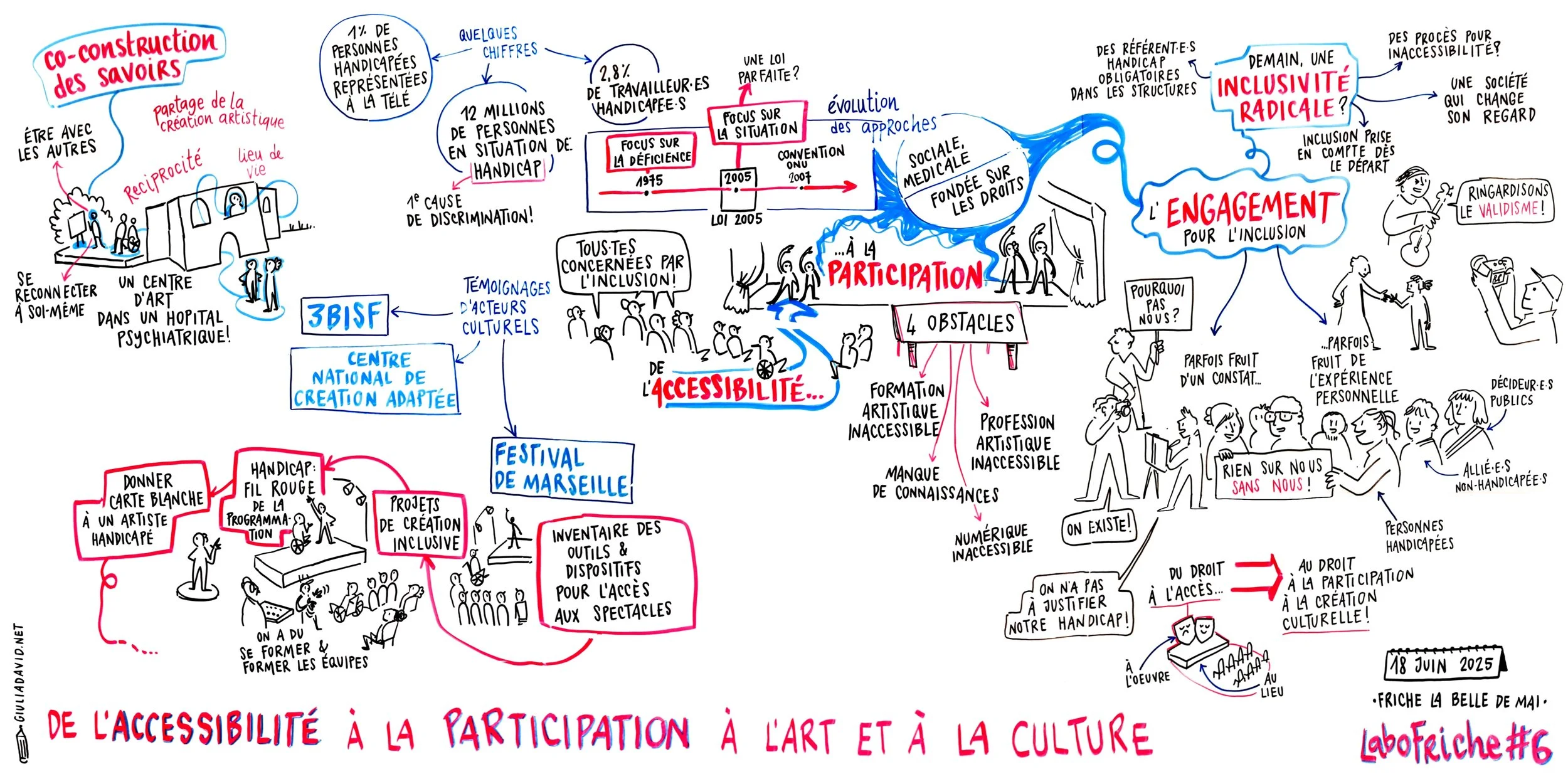 Le 18 juin 2025, j’ai facilité graphiquement la 6ème rencontre du LaboFriche, espace de la Friche Belle de Mai dédié à la réflexion sur des enjeux sociétaux contemporains.